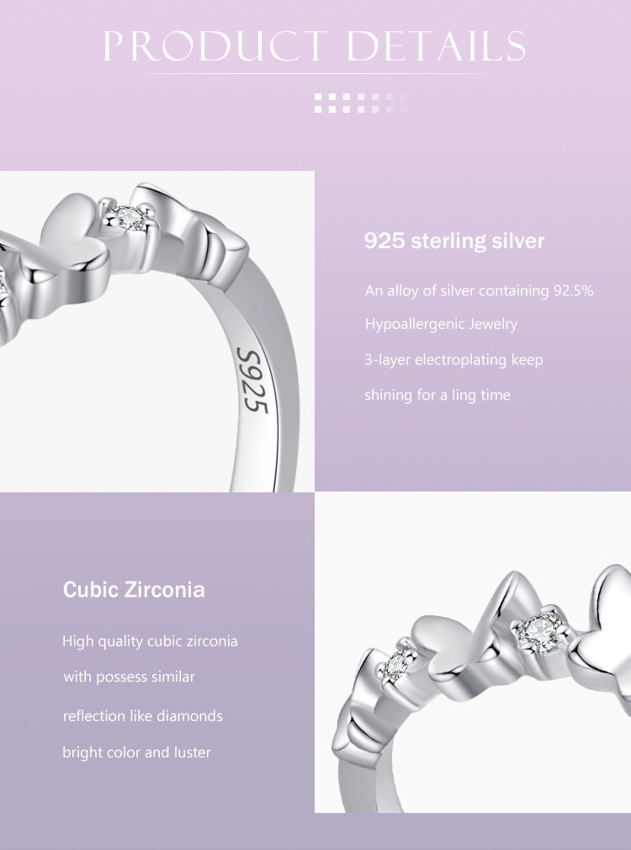 ■優雅に舞う蝶々をモチーフにした100% S925シルバーリング。絶妙なデザインが指先に華やかさをプラスし、シルバーの輝きが女性らしさを引き立てます。日常使いはもちろん、特別な日のアクセントにも最適なアイテムで、あなたのスタイルを一層引き立てることでしょう。