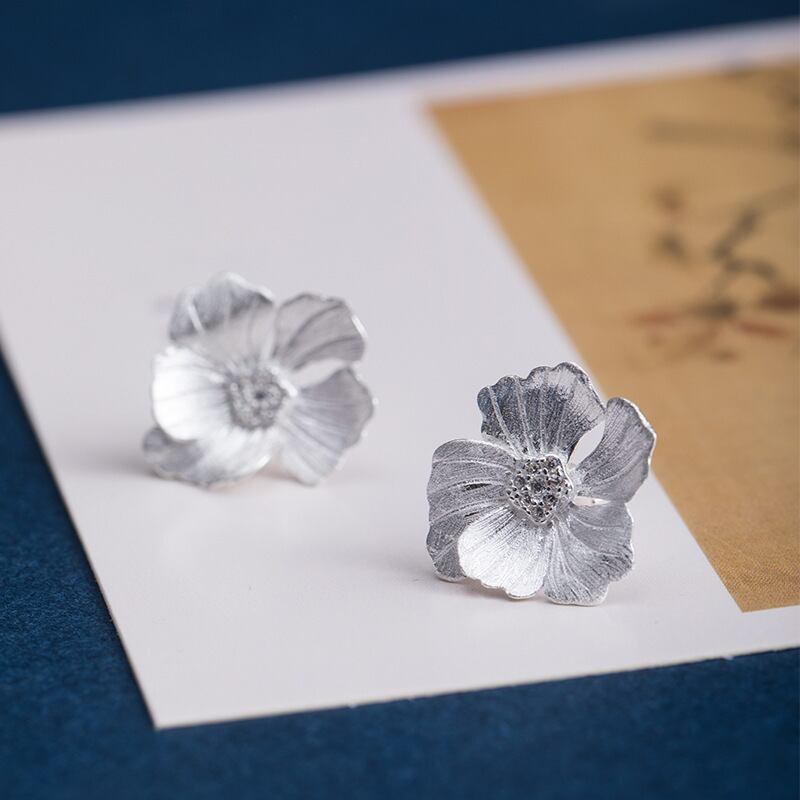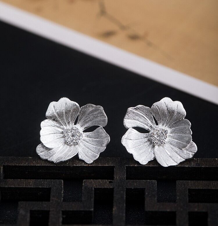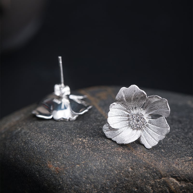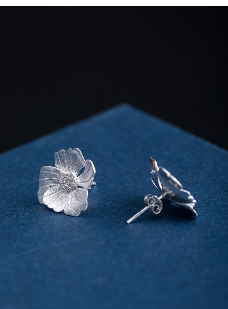 S925シルバーピアスは、独自デザインのコスモスモチーフが特徴的なスタッドピアスです。