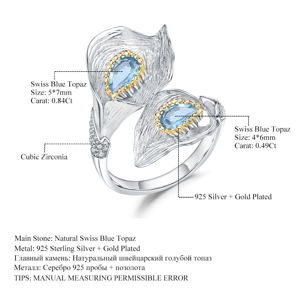 シルバー色リング➡天然トパーズ、S925シルバー、 ゴールドプレーテッド、ジルコニア