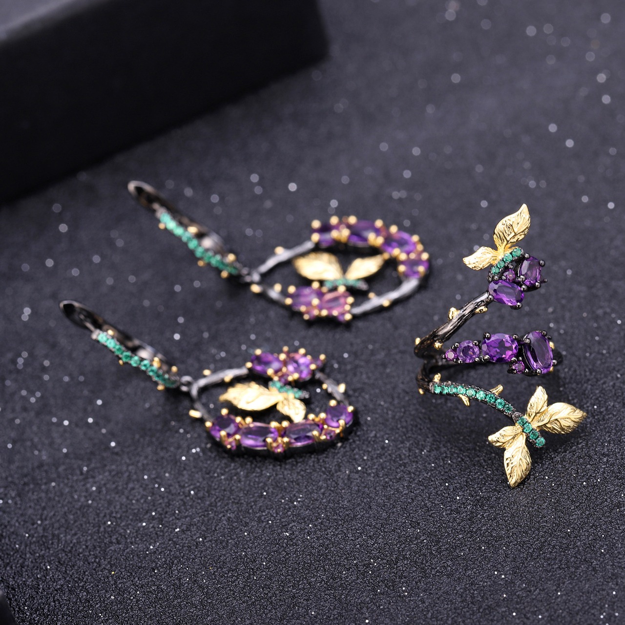 ユニークなデザインがアメジストやガーネットなど天然石の深い色と相まって特別な瞬間を演出します。カジュアルな日常使いから、特別なイベントまで、幅広くお使いいただけるアイテムです。すべて100%純粋なシルバーを使用しているため、アレルギーをお持ちの方でも安心してご利用いただけます。
